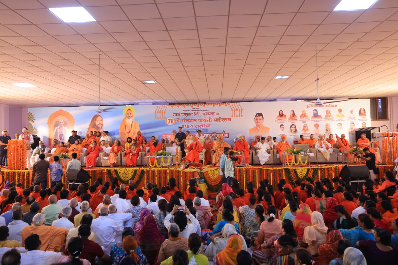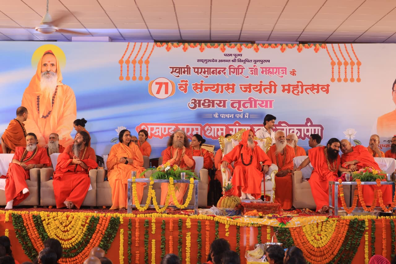 अक्षय तृतीया के पावन अवसर पर अनन्त श्री विभूषित युगपुरुष स्वामी परमानन्द गिरि जी महाराज के 71वें संन्यास जयंती महोत्सव में आध्यात्मिक सानिध्य – योगऋषि पूज्य स्वामी रामदेव जी महाराज, पतंजलि योगपीठ, पूज्य स्वामी चिदानन्द मुनि जी महाराज, परमाध्यक्ष्ज्ञ, परमार्थ निकेतन ऋषिकेश, पूज्य साध्वी ऋतंभरा जी, दीदीमां, श्री निरंजनी पीठाधीश्वर आचार्य महामण्डलेश्वर राजगुरु बीकानेर, पूज्य स्वामी विशोकानन्द भारती जी महाराज, आचार्य महामण्डलेश्वर पूज्य स्वामी कैलाशानन्द जी महाराज, आनन्द पीठाधीश्वर आचार्य महामण्डलेश्वर पूज्य स्वामी बालकानन्द गिरि जी महाराज, पूज्य महंत डॉ. रविन्द्रपुरी जी महाराज, निर्मल पीठाधीश्वर पूज्य श्री महंत ज्ञानेन्द्र सिंह जी महाराज, राष्ट्रीय अध्यक्ष अ.भा. संत समिति जगद्गुरु पूज्य स्वामी अविचलदास जी महाराज, गुजरात, पूज्य आचार्य बालकृष्ण जी महाराज, पतंजलि योगपीठ, हरिद्वार, महामण्डलेश्वर पूज्य स्वामी अनन्तदेव जी महाराज, वामदेव ज्योतिर्मठ, वृन्दावन, पूज्य बाबा निर्मल दास जी महाराज, रायपुर, पंजाब, राष्ट्रीय महामंत्री अ.भा. संत समिति दण्डी स्वामी पूज्य जीतेन्द्रानन्द सरस्वती जी महाराज, वाराणसी, महामण्डलेश्वर पूज्य साध्वी निरंजन ज्योति जी (अध्यक्ष-राष्ट्रीय पिछड़ा वर्ग आयोग), महामण्डलेश्वर पूज्य स्वामी हरिचेतनानन्द जी महाराज, हरिद्वार, महामण्डलेश्वर पूज्य स्वामी आत्मानन्द पुरी जी महाराज, हरिद्वार