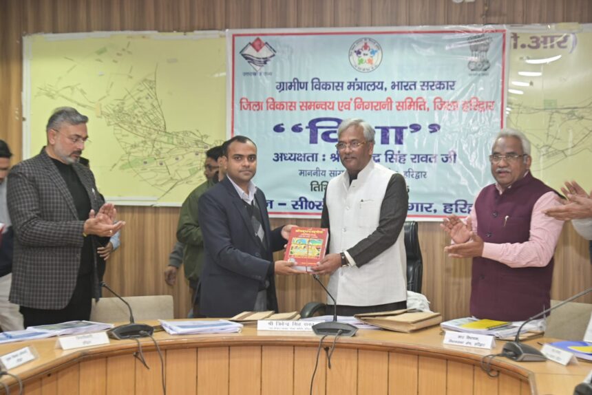 *हरिद्वार । लोक सभा सांसद त्रिवेन्द्र सिंह रावत की अध्यक्षता में मेला नियत्रण कक्ष सीसीआर के सभा कक्ष में जिला विकास समन्व्य एवं निगरानी समिति (दिशा) की बैठक आयोजित की गई जिसमें विभिन्न विभागों के माध्यम से केन्द्र सरकार द्वारा संचालित जल कल्याणकारी योजनाओं की विभागवार समीक्षा की गई तथा पूर्व बैठक में दिए गये निर्देशों में की गई कार्यवाही की विभागवार समीक्षा की गई।