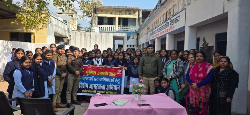 हरिद्वार पुलिस टीम द्वारा “पुलिस आपके द्वार” कार्यक्रम के तहत राजकीय कन्या उच्चतर विद्यालय हरिद्वार में आयोजित किया गया जागरुकता कार्यक्रम