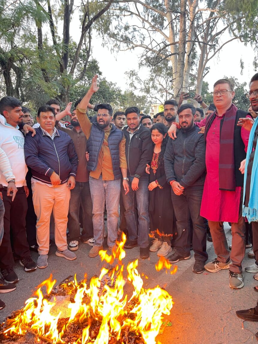 देहरादून ।देहरादून। भारत मंडपम, नई दिल्ली में आयोजित एआई समिट के दौरान यूथ कांग्रेस द्वारा अराजकता फैलाने के प्रयास के विरोध में आज भारतीय जनता युवा मोर्चा ने महानगर कार्यालय देहरादून से कांग्रेस मुख्यालय तक जोरदार प्रदर्शन किया। कार्यकर्ताओं ने कांग्रेस पार्टी एवं राहुल गांधी के खिलाफ नारेबाजी करते हुए पुतला दहन किया। प्रदेश अध्यक्ष भाजयुमो विपुल मंडोली ने कहा कि देश की प्रगति और तकनीकी विकास के महत्वपूर्ण मंच पर इस प्रकार का व्यवधान लोकतांत्रिक मूल्यों के विरुद्ध है।