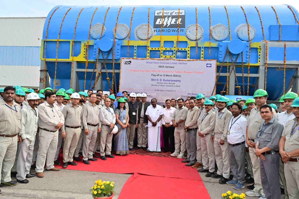केंद्रीय मंत्री ने अडानी पावर लिमिटेड के रायपुर प्रोजेक्ट की यूनिट-1 के लिए निर्मित, 800 मेगावॉट क्षमता के टीजी स्टेटर को भी हरी झंडी दिखाकर रवाना किया । श्री कुमारस्वामी ने स्टेटर के सफल निर्माण एवं डिस्पैच को, बीएचईएल की तकनीकी उत्कृष्टता का एक नायाब नमूना बताया । उल्लेखनीय है कि यह स्टेटर अत्याधुनिक तकनीक और उच्च गुणवत्ता मानकों के अनुरूप तैयार किया गया है ।