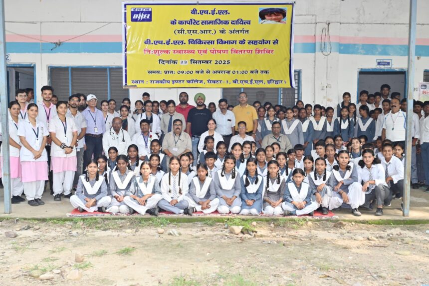 हरिद्वार। बीएचईएल हरिद्वार द्वारा कॉर्पोरेट सामाजिक दायित्व (सीएसआर) के अंतर्गत, उपनगरी के सेक्टर-1 स्थित राजकीय इंटर कॉलेज में छात्राओं हेतु, एक निःशुल्क स्वास्थ्य एवं पोषण वितरण शिविर का आयोजन किया गया । बीएचईएल चिकित्सा विभाग के सहयोग से आयोजित इस शिविर का शुभारम्भ, प्रमुख (चिकित्सा सेवाएं) डा. शारदा स्वरुप तथा महाप्रबंधक (मानव संसाधन) श्री संतोष कुमार गुप्ता ने किया ।