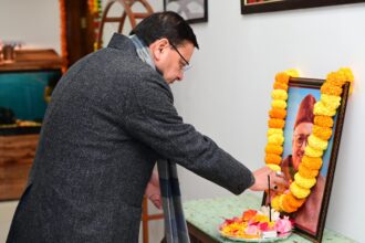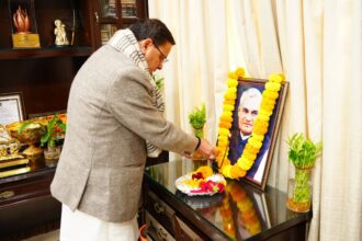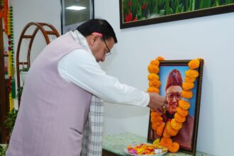 मुख्यमंत्री धामी ने पंडित दीनदयाल उपाध्याय की जयंती पर दीनदयाल पार्क, देहरादून में उनकी प्रतिमा पर माल्यार्पण करते हुए उनका स्मरण किया