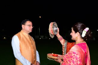 मुख्यमंत्री श्री पुष्कर सिंह धामी ने धर्मपत्नी श्रीमती गीता धामी के साथ मुख्यमंत्री आवास में मनाया करवा चौथ उत्सव