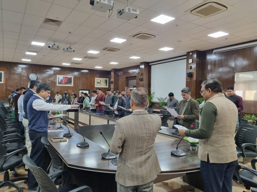 *देहरादून ।मुख्य सचिव श्री आनन्द बर्द्धन ने बुधवार को सचिवालय में संविधान दिवस के अवसर पर अधिकारियों एवं कर्मचारियों के साथ भारत का संविधान की प्रस्तावना का पाठ किया। इस अवसर पर सभी ने प्रस्तावना पट पर हस्ताक्षर भी किए।