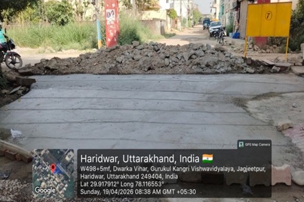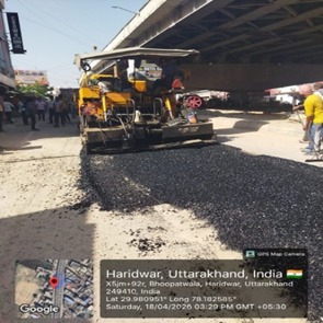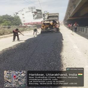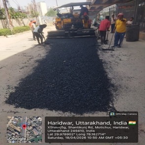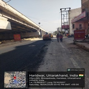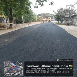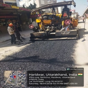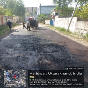 परियोजना प्रबंधक निर्माण एवं अनुरक्षण इकाई गंगा उत्तराखंड पेयजल निगम मिनाक्षी मित्तल ने अवगत कराया है कि जिलाधिकारी के निर्देशों के अनुपालन में केएफडब्लयू वित्त पोषित हरिद्वार जलोत्सारण योजना पैकेज 01 एवं पैकेज 02 के अंतर्गत कराए जा रहे सड़क पुनर्निर्माण संबंधी कार्य जिसके तहत 18 अप्रैल को किए गए निर्माण कार्यों का विवरण निम्नवत है जिसमें- पैकेज 01 में बिटुमिनस रोड़ वर्क (पुराना आरटीओ चौक से दूधाधारी चौक) तक 318 मीटर, बिटुमिनस रोड़ वर्क (इंडस्ट्रीयल एरिया) 588 मीटर ,पीपल वाली गली सीसी रोड 44 मीटर , अमृत गंगा अपार्टमेंट (सीसी रोड) कार्य 40 मीटर पूर्ण कर लिया गया है तथा कुल 990 मीटर कार्य पूर्ण कर लिया गया है। तथा पैकेज 02 के अंतर्गत द्वारका विहार पावर ब्लॉक 22 मीटर, द्धारका विहार (सीसी रोड) 04 मीटर ,गणपति विहार सीसी रोड 37 मीटर, गणपतिधाम फेज 3 (सीसी रोड) 40 मीटर, गणपतिधाम फेस 3 पावर ब्लॉक 10 मीटर कार्य पूर्ण करते हुए कुल 113 मीटर निर्माण कार्य पूर्ण कर लिया गया है ।