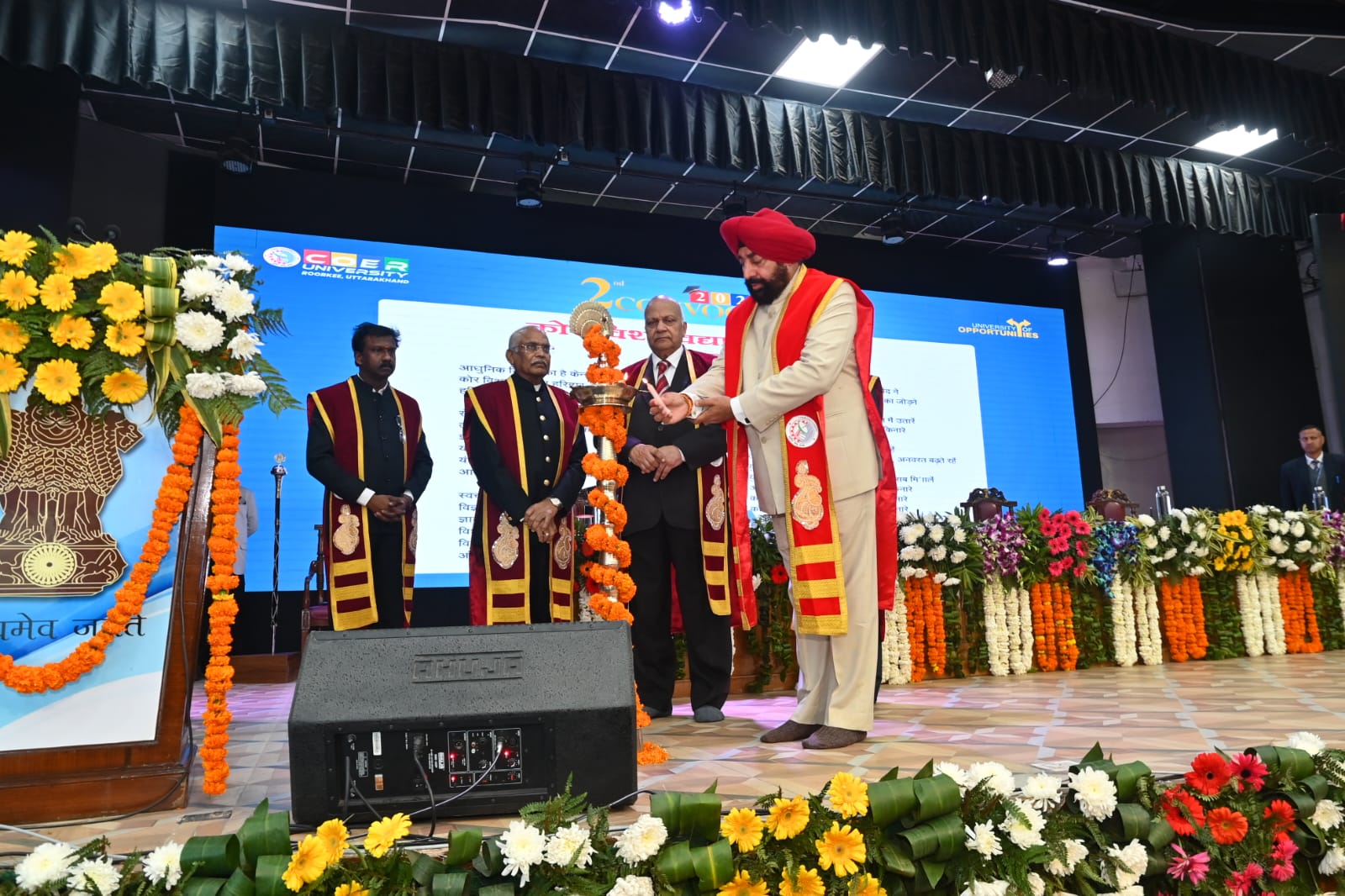 हरिद्वार । राज्यपाल लेफ्टिनेंट जनरल गुरमीत सिंह (से नि) ने आज कोर विश्वविद्यालय, रुड़की के दूसरे दीक्षांत समारोह में प्रतिभाग कर विद्यार्थियों को डिग्री और मेडल प्रदान किए। इस अवसर पर दीक्षांत समारोह को संबोधित करते हुए राज्यपाल ने विद्यार्थियों को राष्ट्र निर्माण में सक्रिय भूमिका निभाने का आह्वान किया। उन्होंने कहा कि दीक्षांत केवल डिग्री प्राप्त करने का अवसर नहीं है, बल्कि यह आत्मबोध से राष्ट्रबोध की ओर बढ़ने की जागरूक यात्रा का आरंभ है।