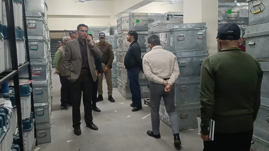निरीक्षण के दौरान जिलाधिकारी ने वेयरहाउस में रखी सभी EVM एवं VVPAT मशीनों के भौतिक सत्यापन, सुरक्षा प्रोटोकॉल, द्विस्तरीय लॉकिंग सिस्टम, सीसीटीवी निगरानी व्यवस्था, अग्नि सुरक्षा प्रबंधन तथा रख-रखाव की स्थिति का विस्तृत परीक्षण किया। उन्होंने संबंधित अधिकारियों को सुरक्षा मानकों का कड़ाई से अनुपालन सुनिश्चित करने तथा किसी भी प्रकार की तकनीकी या भौतिक त्रुटि पाए जाने पर तत्काल सुधारात्मक कार्रवाई करने के निर्देश दिए।