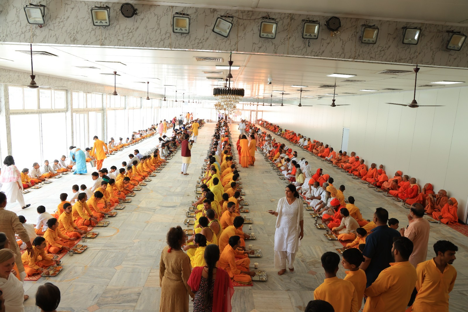 पूज्य स्वामी चिदानन्द सरस्वती जी और ऋषिकुमारों ने सभी को स्नेहपूर्वक भोजन परोसा । परमार्थ गंगा तट इस सेवा यज्ञ का शुभारम्भ मंत्रोंपचार, गीता पाठ और वेदमंत्रों के साथ हुआ। वेद मंत्रों की ध्वनि और गंगा की निर्मल लहरों के मध्य सभी ने भोजन ग्रहण किया।