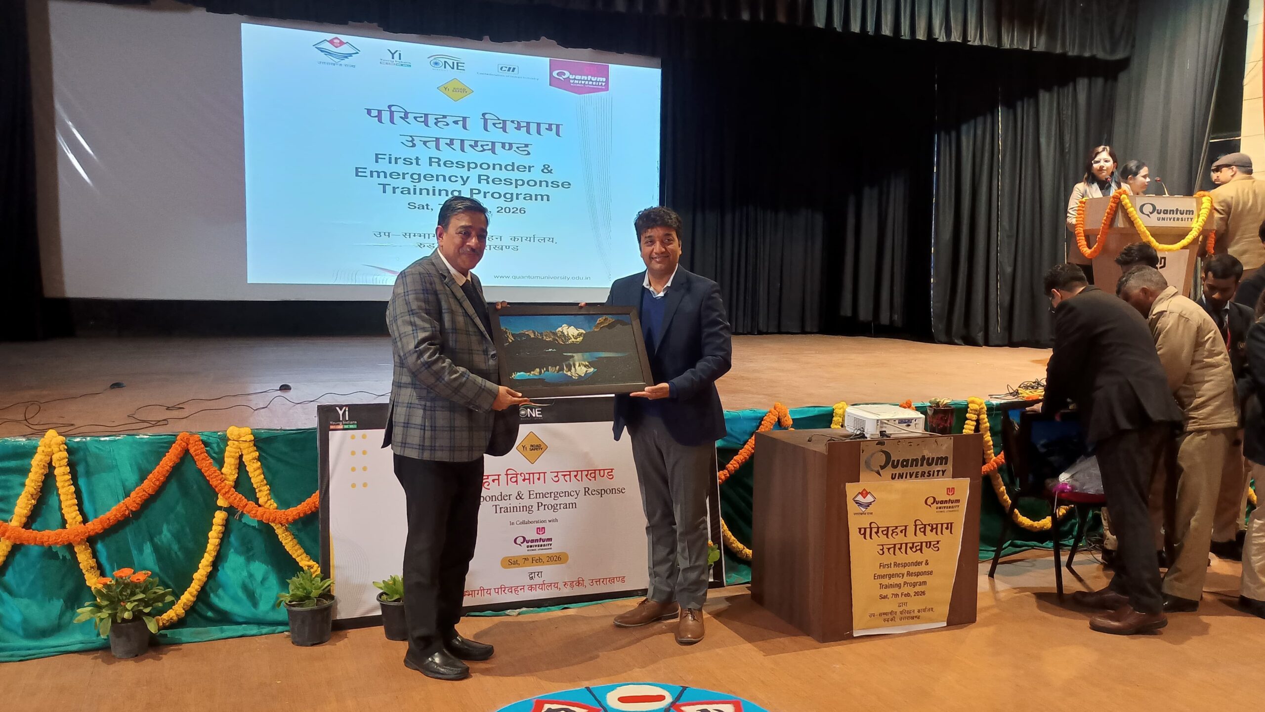 कार्यक्रम के मुख्य अतिथि संभागीय परिवहन अधिकारी देहरादून श्री संदीप सैनी एवं संयुक्त मजिस्ट्रेट रुड़की श्री दीपम सेठ रहे। विशिष्ट अतिथियों में क्वांटम यूनिवर्सिटी के उपकुलपति डॉ विवेक कुमार, रजिस्ट्रार श्री अमित दीक्षित, एआरटीओ मुख्यालय देहरादून एल्विन रॉक्सी एआरटीओ (प्रशासन) रुड़की जितेंद्र चंद, , एवं एनडीआरएफ कमांडेंट उपस्थित रहे।