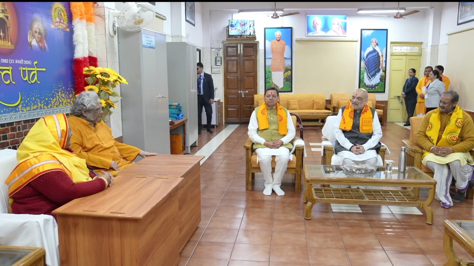 अखिल विश्व गायत्री परिवार प्रमुखद्वय ने श्री शाह को मंगल तिलक किया और रुद्राक्ष माला, युगसाहित्य, गायत्री महामंत्र लिखित उपवस्त्र आदि भेंटकर सम्मानित किया। इस दौरान मुख्यमंत्री श्री पुष्कर सिंह धामी सहित अनेक गणमान्य लोग उपस्थित रहे।