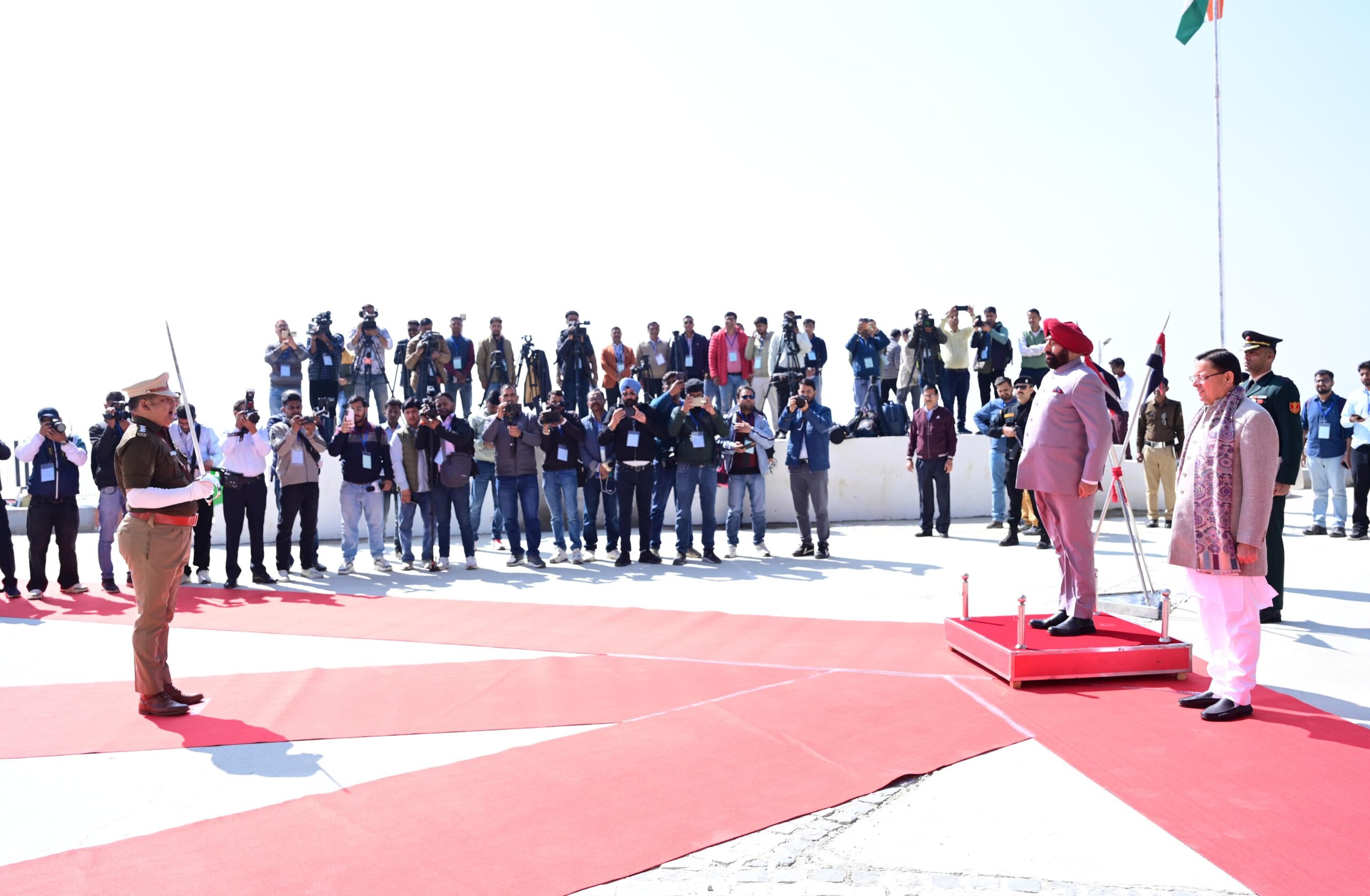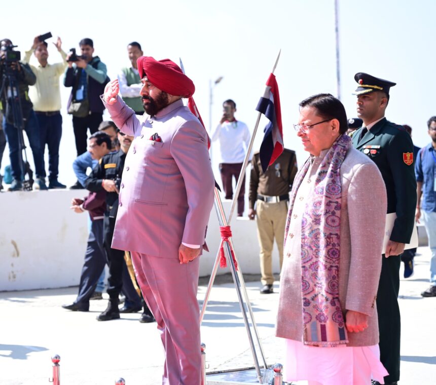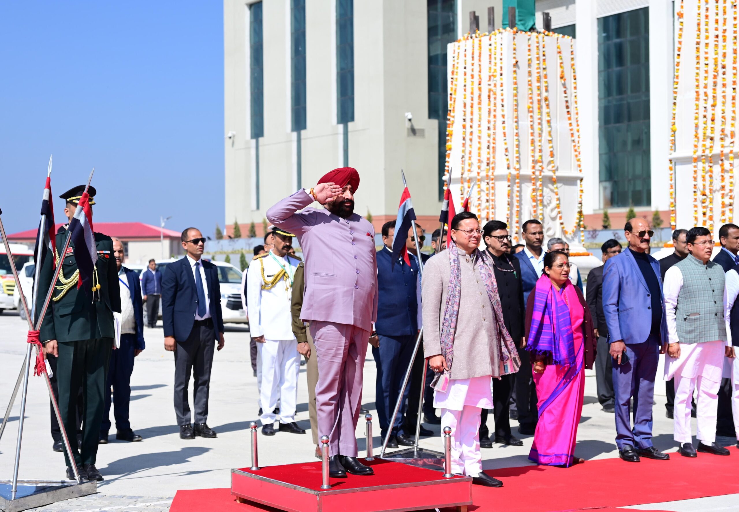 भराड़ीसैंण (गैरसैंण) में विधानसभा बजट सत्र में परेड की सलामी लेते हुए राज्यपाल लेफ्टिनेंट जनरल गुरमीत सिंह (से नि) ।