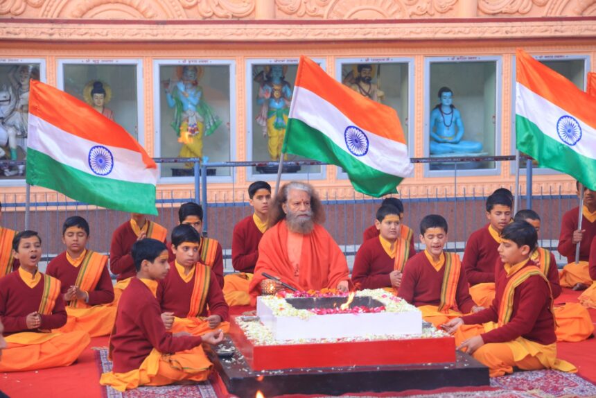 स्वामी जी ने कहा कि 77वां गणतंत्र दिवस भारत के शौर्य की अद्भुत गाथा है। यह भारत की आत्मा, अस्मिता और अखंड शौर्य का उत्सव है। यह वह दिन है जब त्याग, तपस्या और बलिदान से गढ़ी गई हमारी राष्ट्रकथा संविधान के रूप में जीवित हुई। हिमालय की अडिग ऊँचाइयों से लेकर सागर की अथाह गहराइयों तक, गंगा की पवित्रता से लेकर थार की तपते मरुभूमि तक, भारत शौर्य, साधना और समर्पण की अखंड गाथा है। भारत वीरता, करुणा और कर्तव्य का संगम है। हमारे सैनिकों का पराक्रम, किसानों का पुरुषार्थ, श्रमिकों का पसीना और युवाओं का स्वप्न, यही भारत की शक्ति है।