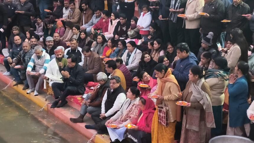 हरिद्वार। हरिद्वार वैश्य एकता परिषद ने नए साल का स्वागत भव्य गंगा महाआरती के साथ किया। हरिद्वार में महाराजा अग्रसेन घाट पर सैकड़ों लोगों ने एक साथ मां गंगा जी की आरती कर सभी के लिए सुख समृद्धि की कामना की। अग्रसेन घाट पर गंगा आरती के वक्त अद्भुत नजारा दिखाई दिया।