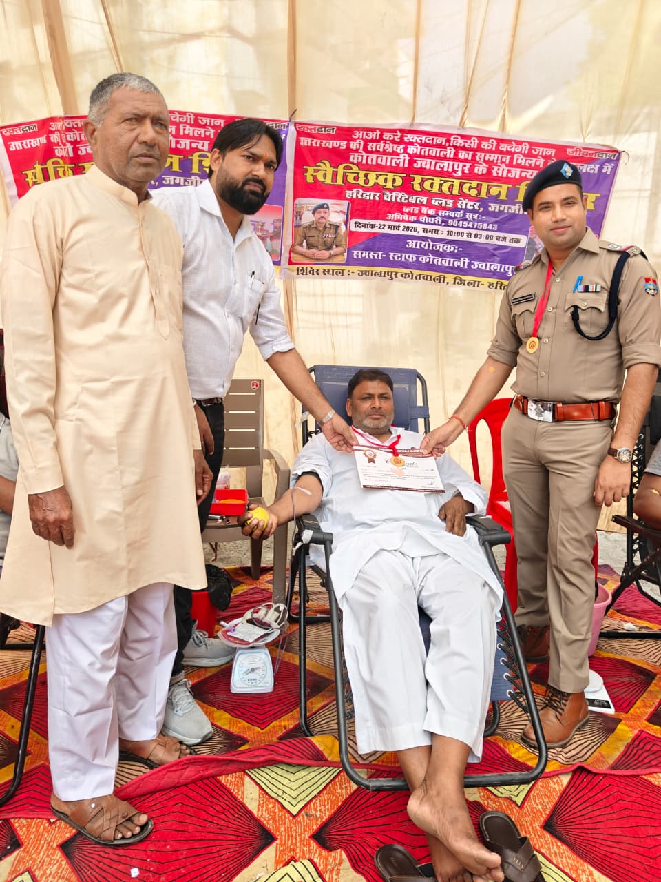 आओ करें रक्तदान – किसी की बचेगी जान” अभियान को ज्वालापुर पुलिस ने बनाया सफल