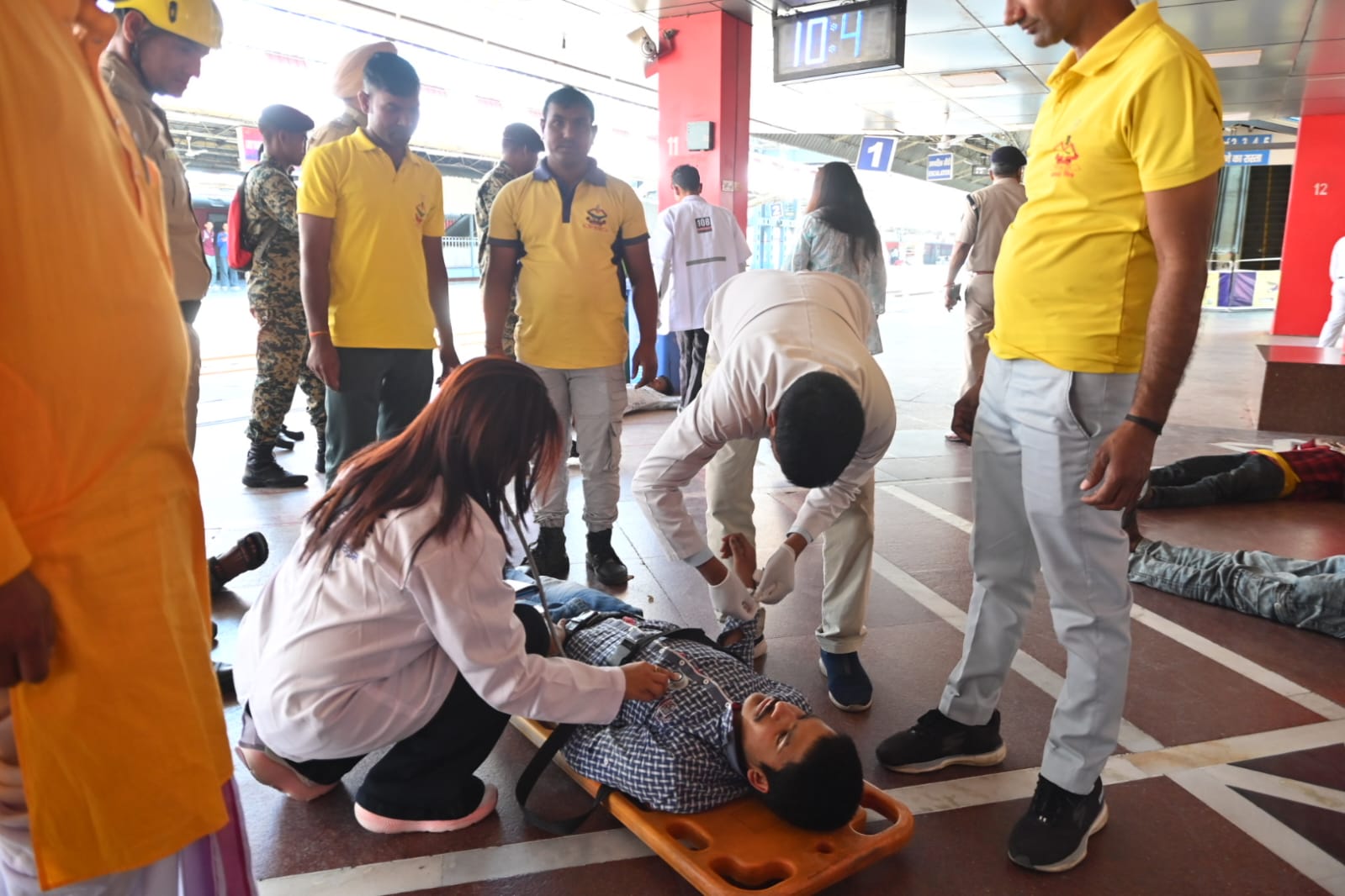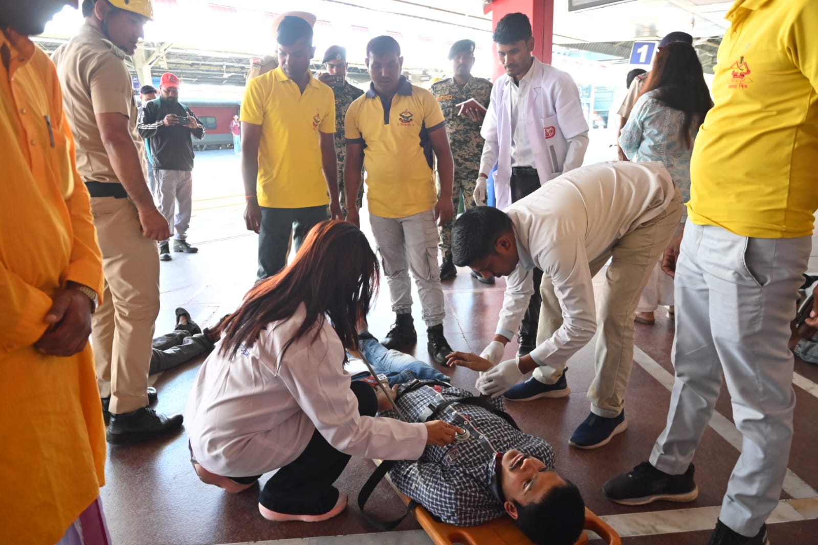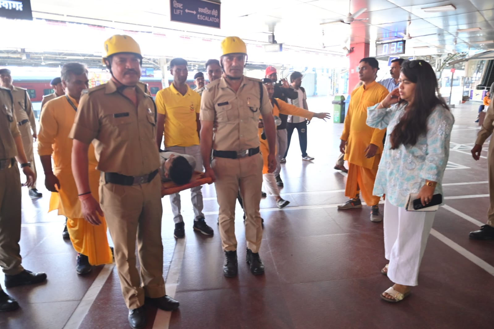 तीसरा परिदृश्य हरिद्वार रेलवे स्टेशन में ट्रेन लेट आने के से स्टेशन पर अचानक श्रद्धालुओं की भीड़ बढ़न के कारण भगदड़ मच गई,जिसमें कई 06 श्रद्धालु घायल हो गए। जिसमें 04 गंभील घायलों को अस्पताल भेजा गया एवं 02 लोगों को रिलीफ सेंटर भेजा गया।
