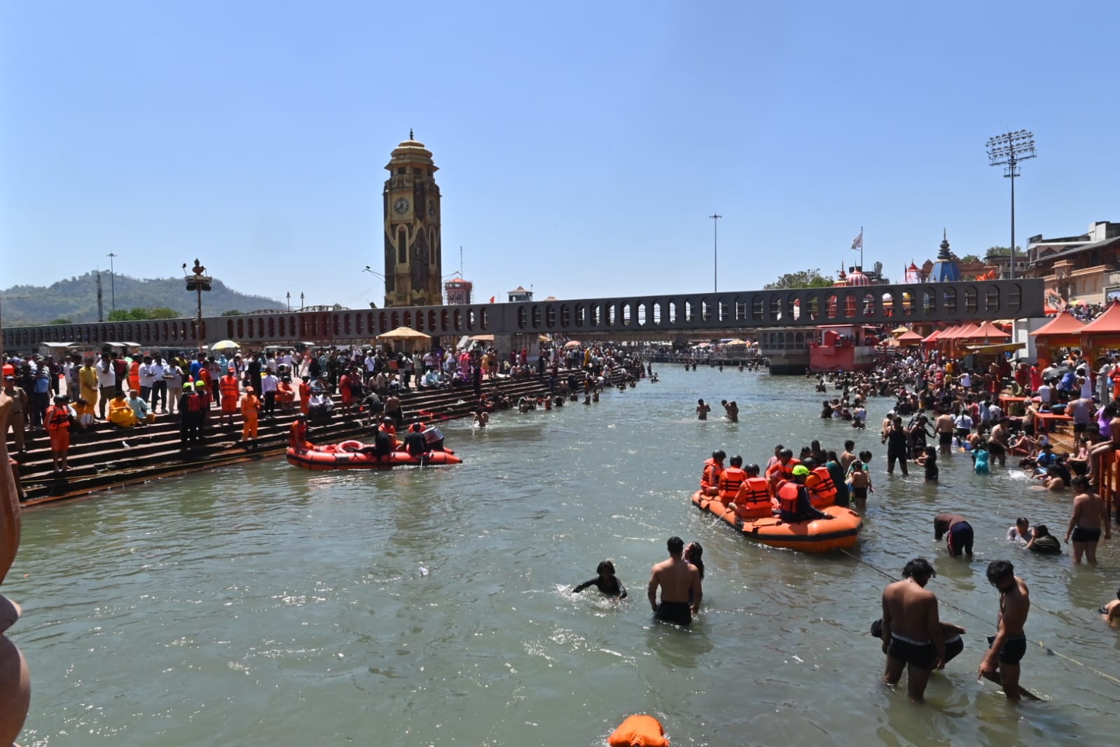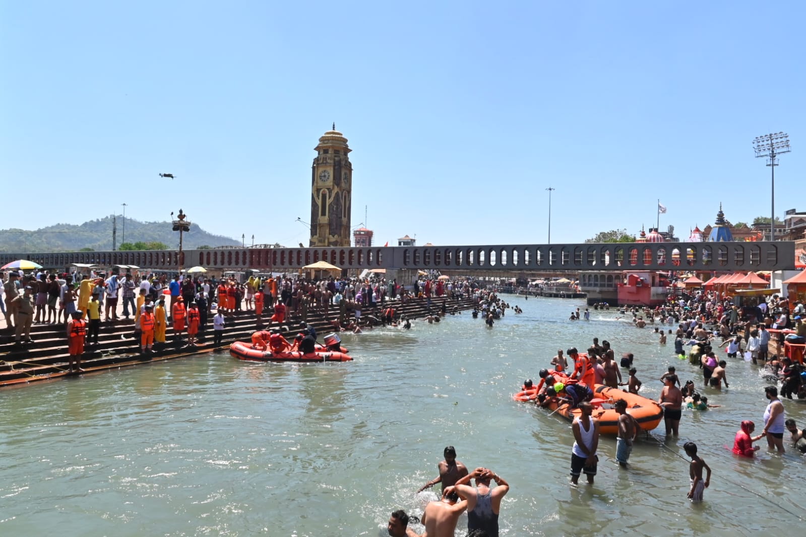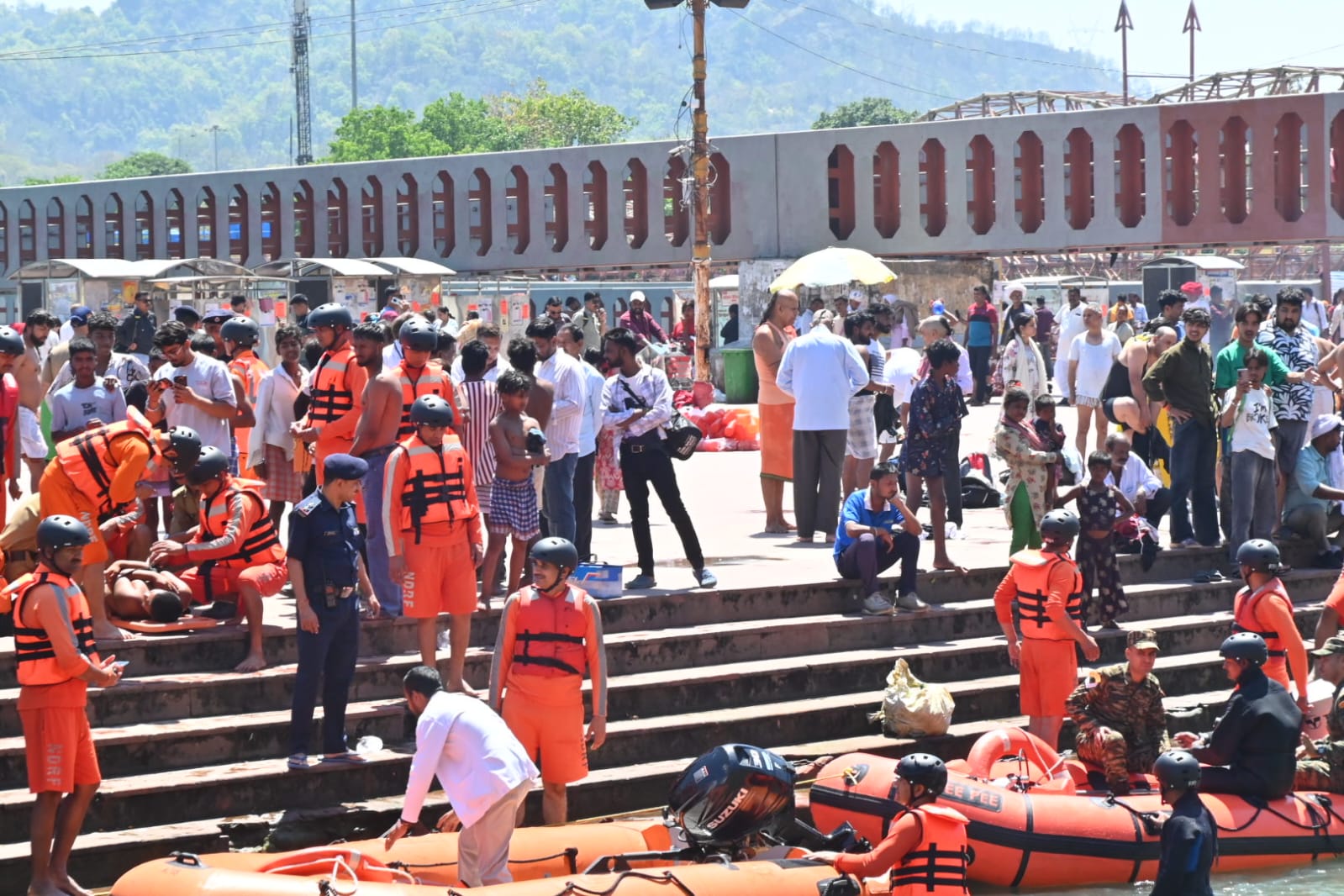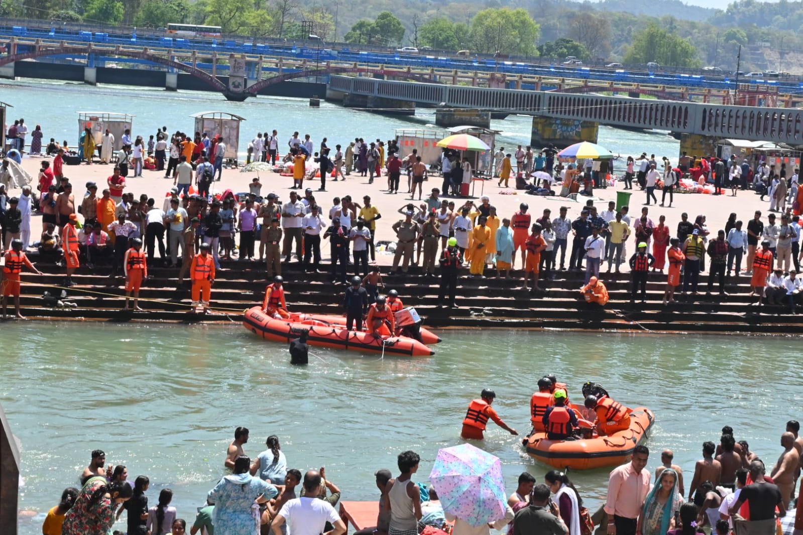दूसरा परिदृश्य शिव पुल हरिद्वार में जल स्तर बढ़ने के कारण भगदड़ की स्थिति पैदा हुई एवं 14 लोगो गंगा में बहा गए थे उनका जल पुलिस द्वारा सफल रेस्क्यू किया गया।जिसमें 05 लोग मामूली घायलों का प्राथमिक उपचार किया गए एवं 09 लोगों की रिलीफ सेंटर भेजा गया।