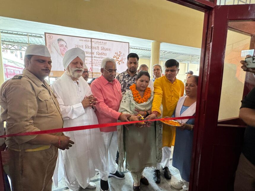 आज संत निरंकारी मिशन हरिद्वार शाखा के द्वारा रक्तदान शिविर का आयोजन किया गया जिसमें सुनील सैनी राज्य मंत्री ने मुख्य अतिथि के तौर पर फीता काटकर रक्तदान शिविर का शुभारंभ किया रक्तदान कार्यक्रम में अतिथि हरिद्वार विधायक मदन कौशिक ,अतिथि हरिद्वार मेयर किरण जैसल उपस्थित रहे , राज्य मंत्री जी ने बताया रक्तदान महादान होता है रक्तदान हम सभी को करना चाहिए, रक्तदान कर अगर हमारा रक्त किसी के काम आ सके और उसका जीवन बच सके यही सच्ची श्रद्धा और सेवा है हम सभी को सेवा ही परमो धर्म के सिद्धांत पर चलना चाहिए किसी भी रूप में समाज सेवा करना चाहिए रक्तदान भी समाज सेवा है,