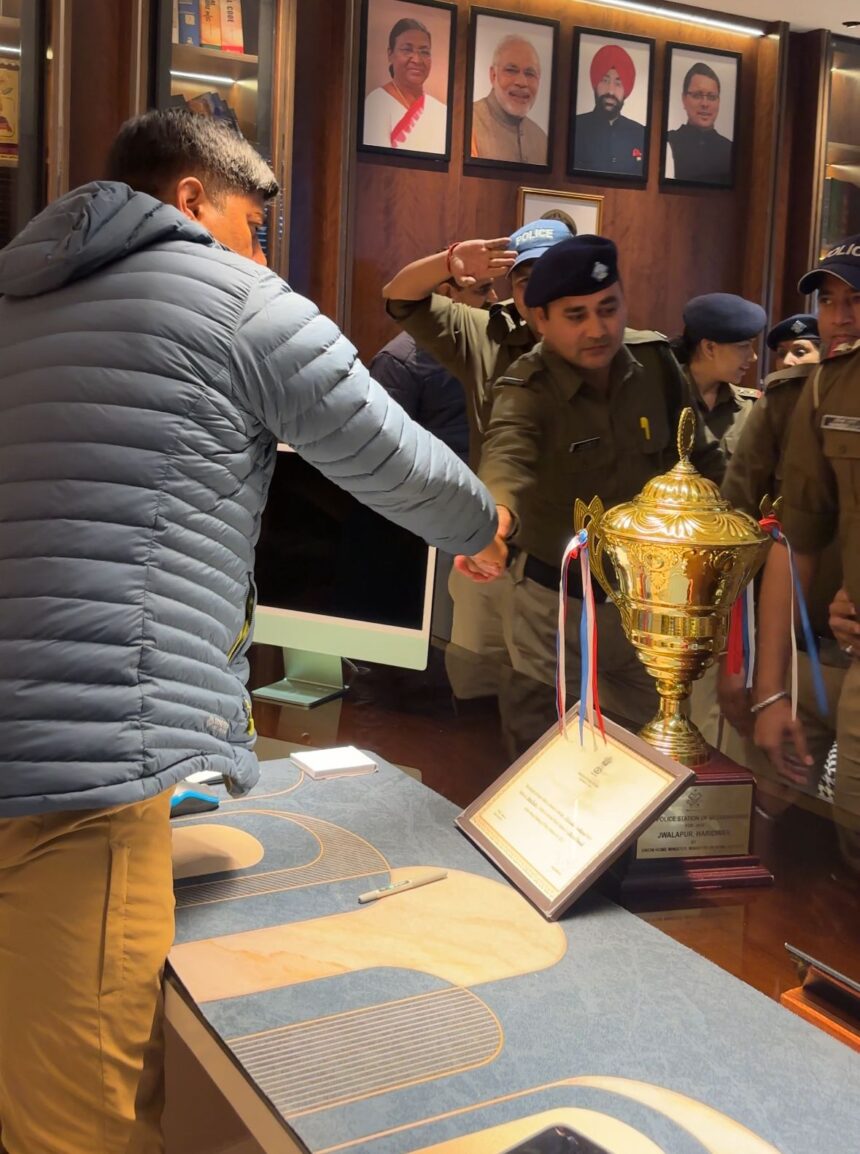 गणतंत्र दिवस के अवसर पर उत्तराखण्ड की सबसे बेहतर कोतवाली के लिए सम्मानित होने के पश्चात कोतवाली ज्वालापुर पुलिस की टीम ट्रॉफी लेकर वरिष्ठ पुलिस अधीक्षक हरिद्वार के कैंप ऑफिस में पहुंची।