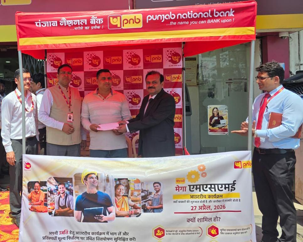 हरिद्वार. अग्रणी जिला प्रबंधक दिनेश गुप्ता ने अवगत कराया है कि आज ज्वालापुर हरिद्वार और रुड़की में पंजाब नैशनल बैंक, मंडल कार्यालय हरिद्वार के द्वारा एक दिवसीय एम.एस.एम.ई मेले (पी.एन.बी मेगा एम.एस.एम.ई आउटरीच कार्यक्रम) का आयोजन किया गया। पीएनबी मेगा आउटरीच कार्यक्रम का आरंभ पंजाब नैशनल बैंक के प्रधान कार्यालय से आए महाप्रबंधक कौशिक चटोपाध्याय के द्वारा विधिवत तरीके से किया गया। इस प्रकार के ऋण महामेला पूरे भारतवर्ष में अनेक स्थानों पर पंजाब नैशनल बैंक द्वारा आयोजित किए जा रहे हैं। इन महामेलों में पीएनबी के द्वारा विभिन्न प्रकार की एमएसएमई स्कीमों जैसे एमएसएमई प्राइम प्लस, जीएसटी एक्सप्रेस, पीएनबी ग्रोथ प्लस इत्यादि से इच्छुक ग्राहकों को अवगत करवाया गया। बैंक के द्वारा इस आउटरीच कार्यक्रम के माध्यम से प्राप्त ऋण आवेदनों पर आकर्षक ब्याज दर एवं अनुकूलित वित्तीय समाधानों की सुविधा प्रदान की गयी जिसका विभिन्न ग्राहकों के द्वारा 27 अप्रैल को हिस्सा लेकर लाभ उठाया गया। कार्यक्रम में कुल 129 करोड़ रुपए की लीड जेनरेट हुई जिसमें से लगभग 33.25 करोड़ रुपए के ऋणों को स्वीकृति पत्र भी प्रदान किए गए।