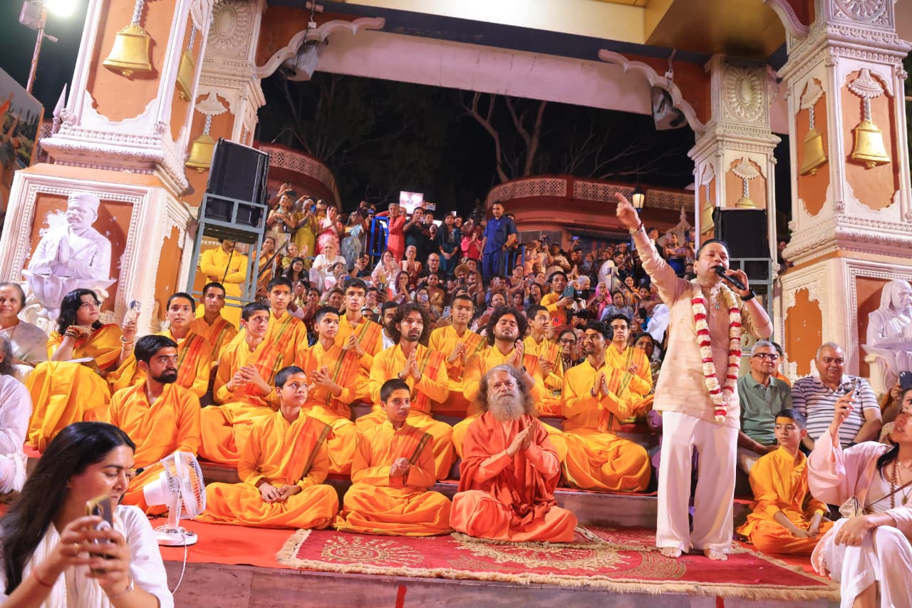 माँ गंगा के पावन तट पर वेद मंत्रों की गूँज, दीपों की स्वर्णिम आभा, भक्ति की तरंगों और हर-हर गंगे के दिव्य घोष के मध्य पद्मश्री कैलाश खेर जी ने लगभग सात सौ वर्ष प्राचीन संत कबीर जी के अमर भजन को अपनी ओजस्वी और आत्मा को स्पर्श करने वाली स्वर साधना से सजीव कर दिया। उनके स्वर जैसे ही गूँजे, वातावरण भक्ति, भाव और आध्यात्मिक ऊर्जा से भर उठा। ऐसा प्रतीत हो रहा था मानो संत कबीर जी की वाणी स्वयं गंगा तट पर पुनः अवतरित होकर मानवता को प्रेम, सत्य और ईश्वर स्मरण का संदेश दे रही हो।