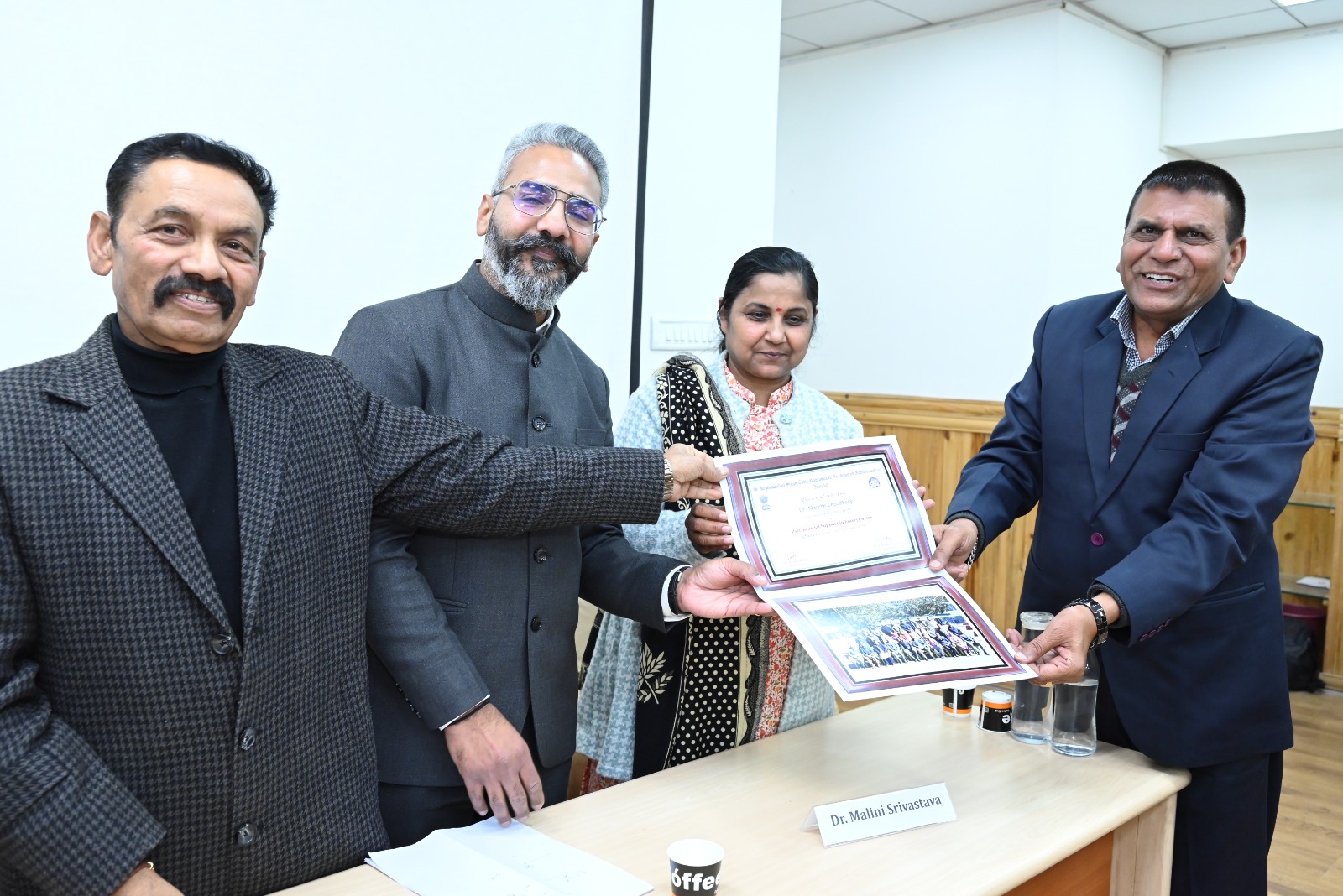 उत्तराखण्ड आयुर्वेद विश्वविद्यालय के कुलपति प्रो. डॉ. अरूण त्रिपाठी एवं कुलसचिव नरेन्द्र सिंह ने कहा कि डॉ. नरेश चौधरी अपने मूल दायित्वों के निर्वहन के साथ आपदाओं में भी समर्पित जन समाज सेवा के लिये हमेशा अग्रणीय रहते हुए अधिक से अधिक कार्यशालाओं, सेमिनार से जो ज्ञान प्राप्त करते हैं उक्त ज्ञान का सीधा लाभ अपने अनुभवों के साथ जन प्रचार- प्रसार के माध्यम से जरुरतबन्दों को तो देते ही हैं साथ ही साथ विश्वविद्यालयों के संकाय सदस्यों, अधिकारियों, कर्मचारियों एवं छात्र-छात्राओं को भी ज्ञान प्राप्त होता है। कार्यशाला में एसडीआरएफ, शिक्षा, चिकित्सा, सामाजिक, स्वंयसेवी संस्थाओं के विभिन्न जनपदों के स्वंयसेवकों एवं प्रतिनिधियों द्वारा विशेष प्रतिभाग किया गया। उत्तराखण्ड प्रशासन अकादमी के आपदा प्रकोष्ठ प्रभारी डॉ. ओमप्रकाश, कोर्स निदेशक मंजू पाण्डे, रिकोर्स पर्सन कॉर्डियोलोजिस्ट डॉ. सुधाश सिंह, डॉ. मालिनी श्रीवास्तव, डॉ. मधुलता नयाल, अजहर राशिदी ने भी डॉ. नरेश चौधरी को प्रमाण पत्र देकर बधाई देते हुए उनके द्वारा आपदाओं में किये गये कार्यों की सराहना की।