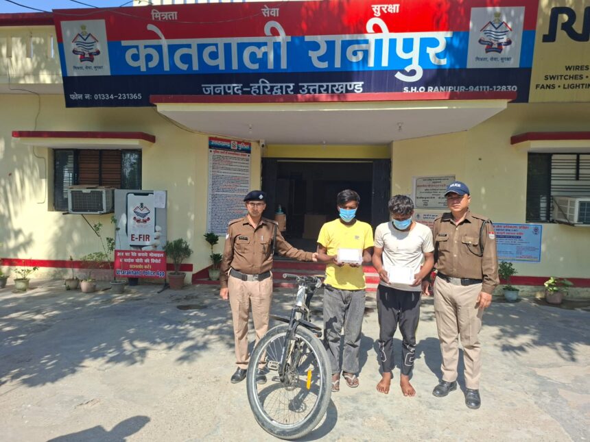 उक्त दोनो अभियोगो की घटना के अनावरण व अज्ञात चोरो की तलाश हेतु उच्चाधिकारीगण के निर्देशन में रानीपुर पुलिस टीमो द्वारा तत्काल कार्यवाही कर विभिन्न सुरागों अध्ययन करते हुए कल दिनांक 28.02.2026 को दौराने चैकिंग इन्द्रलोक कालोनी की तरफ से आने वाले कच्चे रास्ते से दो आरोपियो विकास उर्फ डी0के0 व राजू कुमार को धर दबोचकर उनके कब्जे से दोनो अभियोगो में चोरी किये गये समान की बरामदगी की गयी।