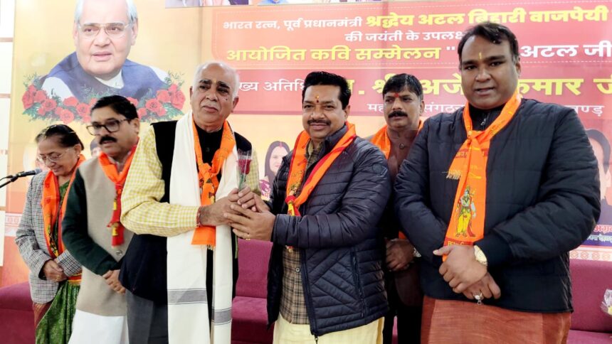 देहरादून।आज दिनांक 25 दिसंबर 2025 को भारतीय जनता पार्टी महानगर के अध्यक्ष सिद्धार्थ उमेश अग्रवाल जी के नेतृत्व में देश के पूर्व प्रधानमंत्री भारत रत्न श्रद्धेय अटल बिहारी वाजपेई जी की जयंती दिवस पर नाथ पैलेस बल्लीवाला में कवि सम्मेलन का आयोजन किया गया।