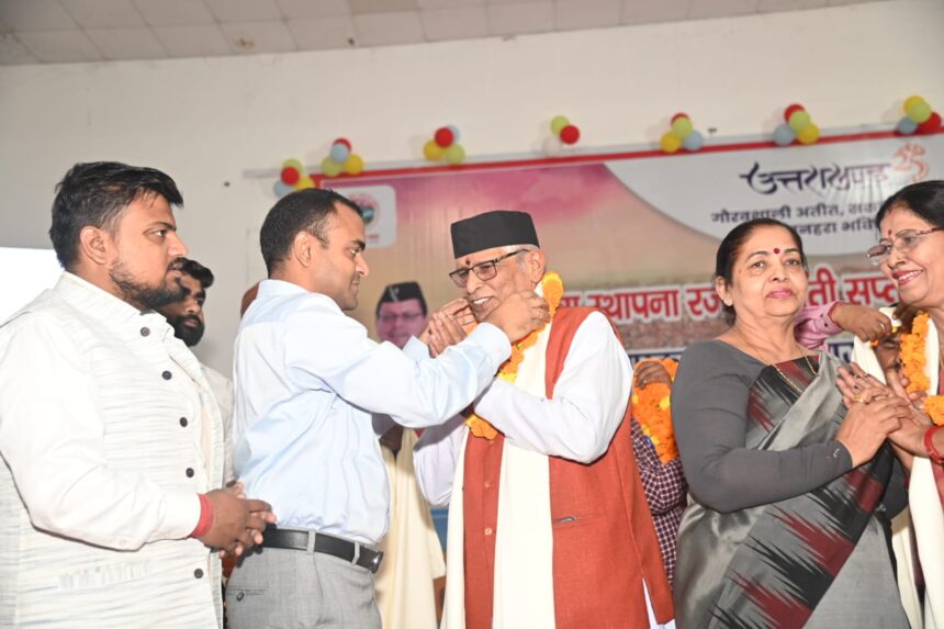 हरिद्वार , उत्तराखंड राज्य के स्थापना रजत जयंती सप्ताह के अंतर्गत आयोजित कार्यक्रमों में आज ऋषिकुल आयुर्वेदिक महाविधालय ऑडोटोरियम में जिला प्रशासन की ओर से जनपद के राज्य आंदोलनकारियों के लिए सम्मान समारोह आयोजित किया गया,जिसमें मुख्य अतिथि राज्य सभा सासंद कल्पना सैनी एवं अन्य जनप्रतिनिधियों द्वारा दीप प्रज्वलित कर कार्यक्रम का शुभारंभ किया।इस अवसर पर राज्य आंदोलनकारियों को पुष्प माला एवं शॉल भेंटकर सम्मानित किया।