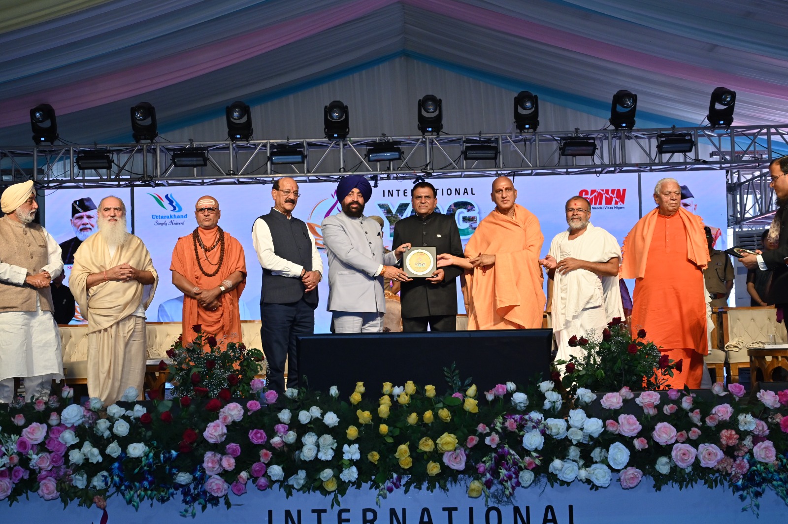 उत्तराखण्ड के राज्यपाल ने अंतर्राष्ट्रीय योग महोत्सव 2026 में उत्कृष्ठ संयोजन के लिये (डॉ.) नरेश चौधरी को प्रतीक चिन्ह् देकर किया सम्मानित
