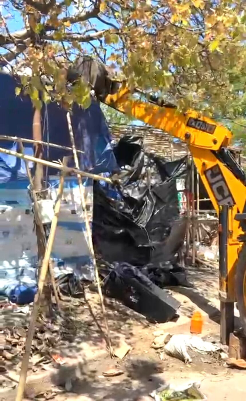 पंतद्वीप घाट एवं आसपास के क्षेत्रों में अतिक्रमण के विरुद्ध कार्यवाही करते हुए लगभग 100 से अधिक झोपड़ियों/खोखो को किया गया ध्वस्त
